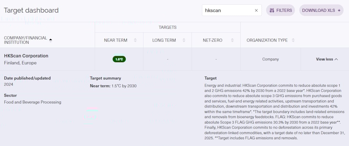 HKFoods (formerly HKScan) is among the first Nordic food companies to have specified the near-term targets both for industrial energy usage and for the land sector (Forest, Land and Agriculture =FLAG).