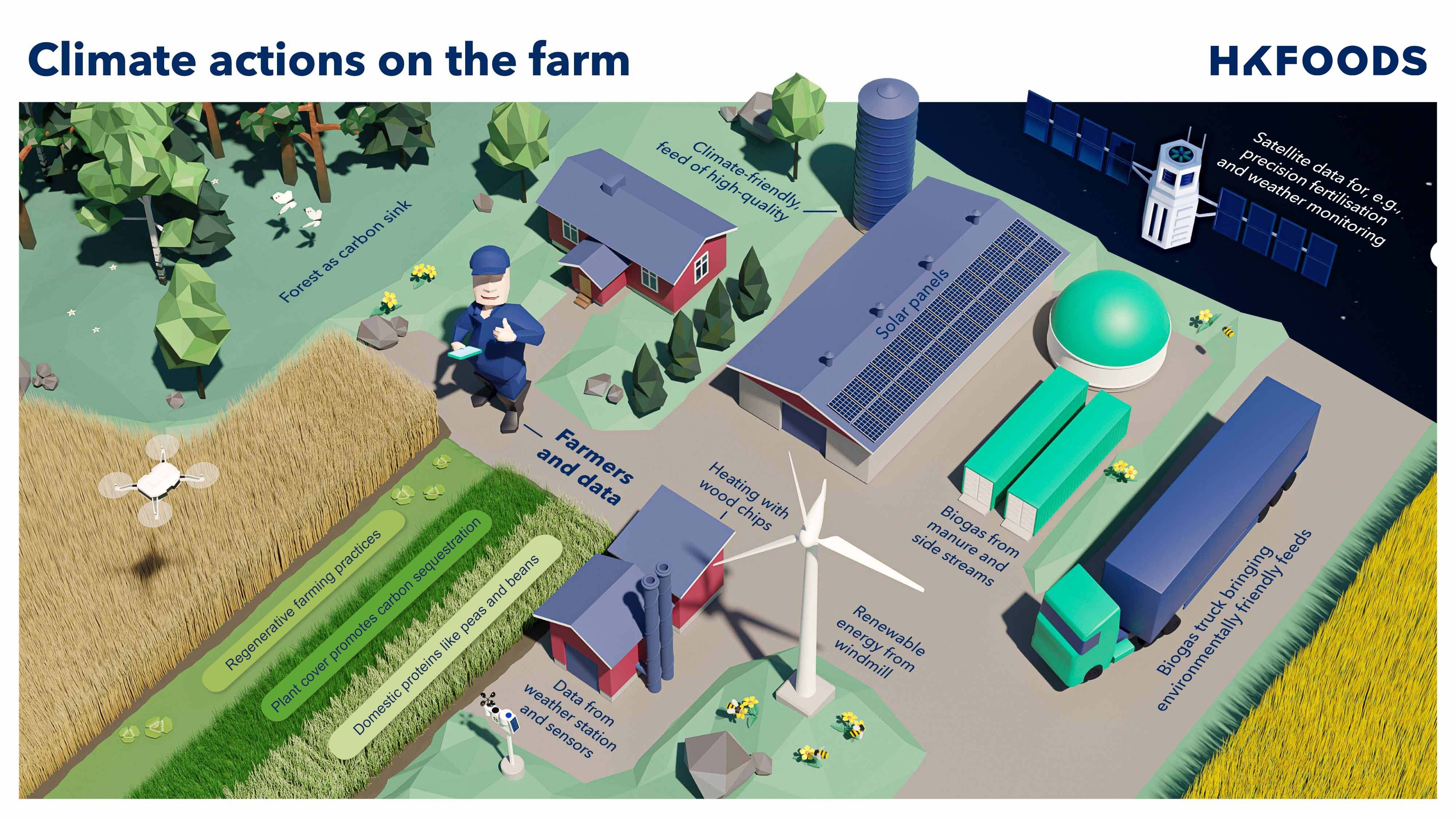 HKFoods’ contract farms have long worked to reduce the climate impact, for example by increasing the circular use of manure, introducing solar power and promoting resource efficiency in feed production.