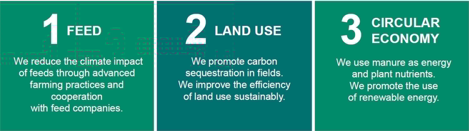 Together with our contract farmers and other partners, we are moving towards our target. In primary production, we focus on reducing emissions from feed production and land use, which have a major impact on climate. Promotion of resource efficiency and carbon sequestration in field farming are at the heart of our efforts.