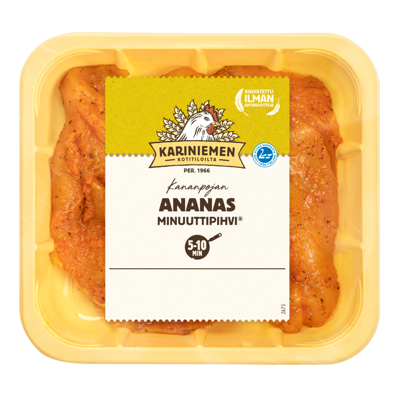Kariniemen Kananpojan Minuuttipihvi Ananas on ohut, fileestä valmistettu pihvi. Minuuttipihvi sopii moniin kanaruokiin, esimerkiksi pasta-annoksiin, salaatteihin ja on herkullinen myös grillattuna. Rasiassa on 3-4 pihviä. Kariniemen Kananpoika on aina suomalaista, ilman antibiootteja kasvatettua kanaa. Tuotteella on "Hyvää Suomesta" -merkki.