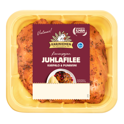 Kariniemen Kananpojan mehevät, karpalo-punaviini -pintamaustetut rintafileet sopivat hyvin juhlapöytään ja parempiin ruokahetkiin. Filee sopii monenlaisiin kanaruokiin ja jäähtyneenä hyvin myös salaattiin. Kariniemen Kananpoika on aina suomalaista, ilman antibiootteja kasvatettua kanaa. Tuotteella on "Hyvää Suomesta" -merkki.