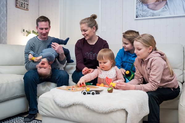 Mikon perheessä riittää vipinää. Sen varmistavat puolitoistavuotiaat kaksoset ja kaksi kouluikäistä.