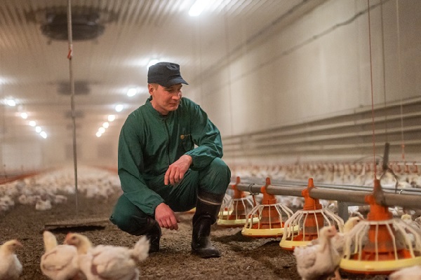 Mikko käy hallissa vähintään kaksi kertaa päivässä. Lintuja tarkkailemalla hän tietää, tarvitseeko hallin lämpötilaa tai kosteutta säätää.