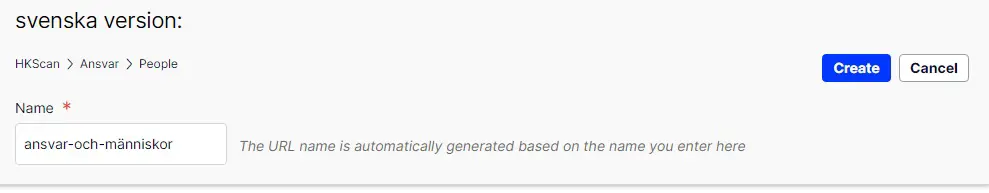 Then change the url to the language version and finally press Create: