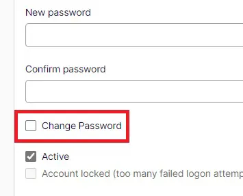 Click the wanted user from the list. Then go to the bottom of the form, there is a checkbox, "Change password". Then follow the form instructions and remember to save changes.
