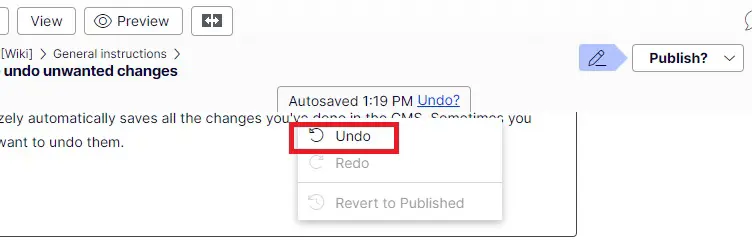 Optimizely automatically saves all the changes you've done in the CMS. Sometimes you might want to undo them.
